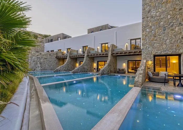 5-звездочный Aeonic Suites & Spa - Only Adults Ornos (Mykonos) предлагает 40 номеров менее чем в 25 минутах ходьбы от археологического памятника Делос. На территории отеля есть ресторан.